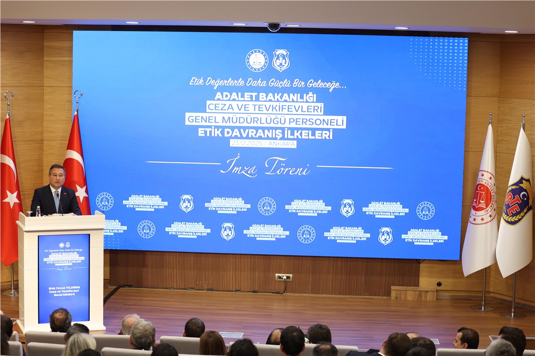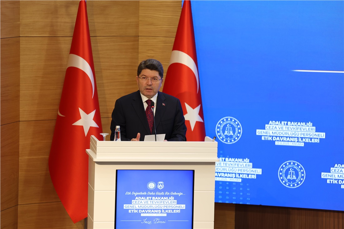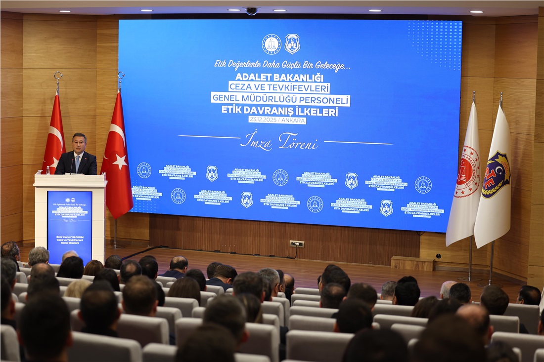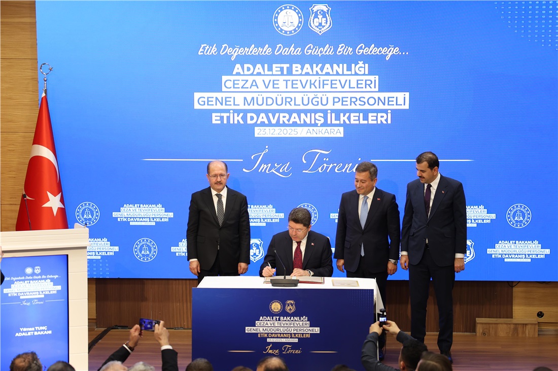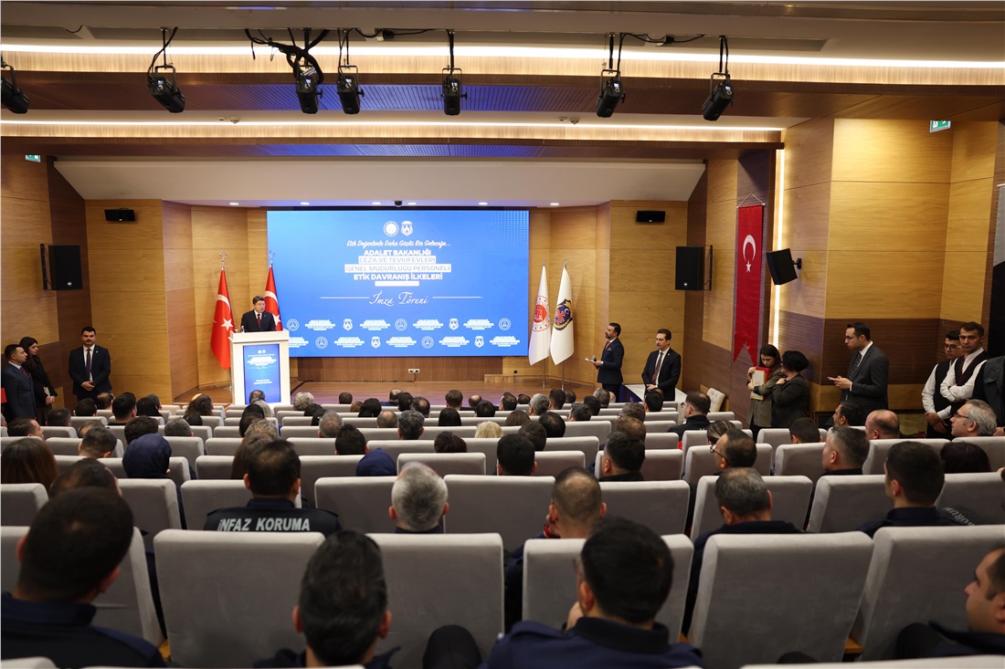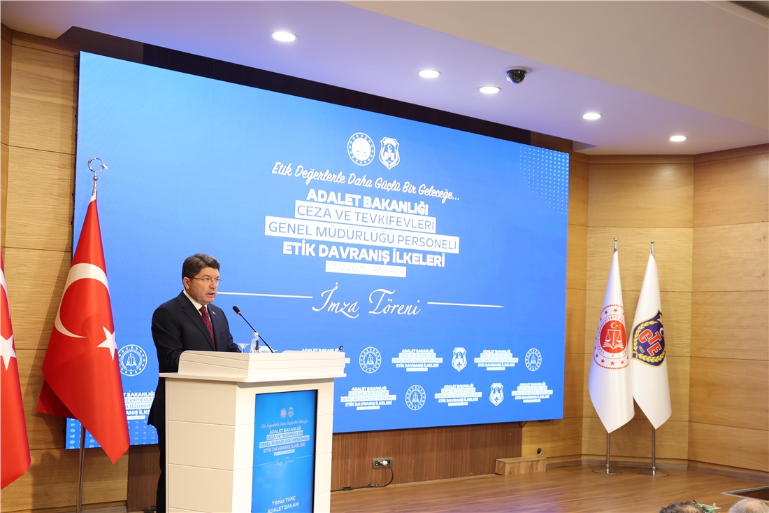 Adalet Bakanı Yılmaz Tunç, Ceza ve Tevkifevleri Genel Müdürlüğü tarafından hazırlanan “Personeli Etik Davranış İlkeleri” belgesini Ankara Hakimevi’nde düzenlenen programda imzalayarak Ceza ve Tevkifevleri Genel Müdürlüğü personeline teslim etti.