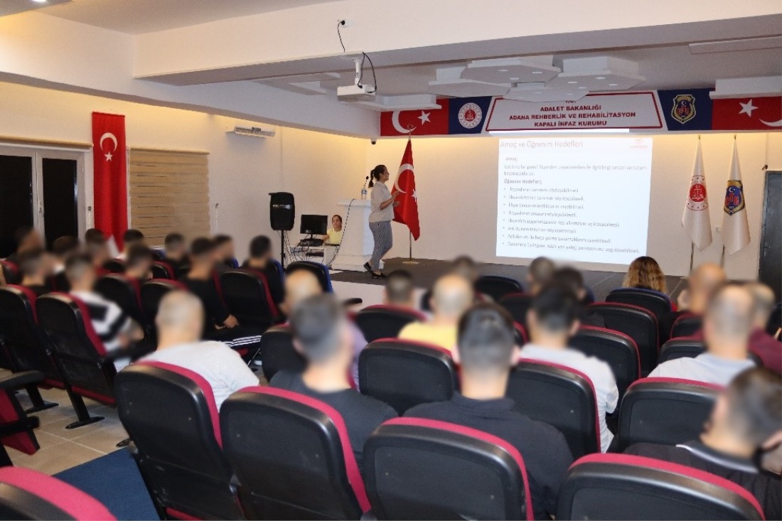 Adana Rehberlik ve Rehabilitasyon Kapalı İnfaz Kurumunda hükümlü ve tutukluların sosyal, kültürel ve manevi gelişimlerini desteklemek amacıyla çeşitli faaliyetler gerçekleştirildi. Bu çerçevede düzenlenen programlardan ilki, Adana Aile ve Sosyal Hizmetler İl Müdürlüğü uzmanı tarafından verilen “Tek Ebeveynli Aile ile Aile ve Ekonomi” konulu konferans oldu. Konferansta aile bütünlüğünün önemi, tek ebeveynli ailelerde yaşanan zorluklar, ebeveynlerin çocuk yetiştirme sürecinde karşılaşabilecekleri sorunlar ve ekonomik bilinçle alınabilecek tedbirler üzerinde duruldu. Katılımcılara, aile içi iletişimin güçlendirilmesi, toplumsal dayanışma bilincinin geliştirilmesi ve ekonomik planlamanın aile huzuruna katkısı hakkında kapsamlı bilgiler aktarıldı. Program, soru-cevap bölümünde hükümlü ve tutukluların yönelttiği soruların detaylı olarak cevaplanmasıyla daha da verimli hale geldi.