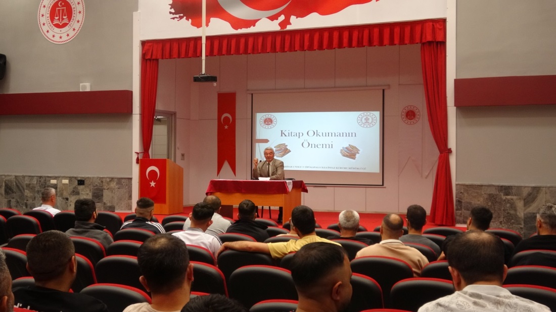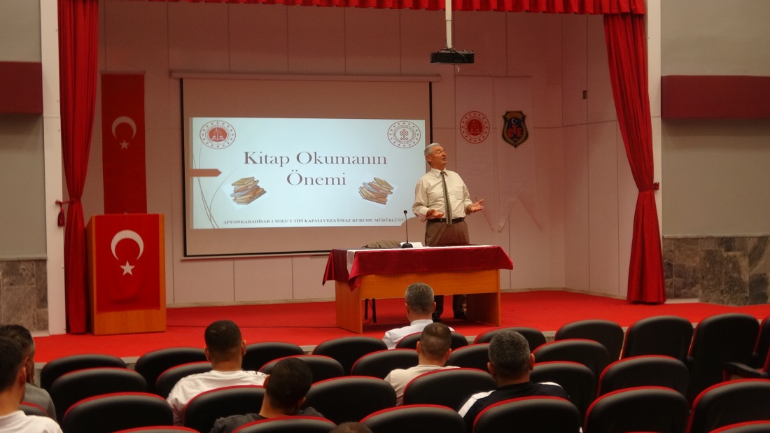 Afyonkarahisar 1 Nolu T Tipi Kapalı Ceza İnfaz Kurumunda, eğitim ve iyileştirme faaliyetleri kapsamında Gedik Ahmet Paşa İl Halk Kütüphanesi iş birliğiyle “Kitap Okumanın Önemi” konulu konferans gerçekleştirildi.
