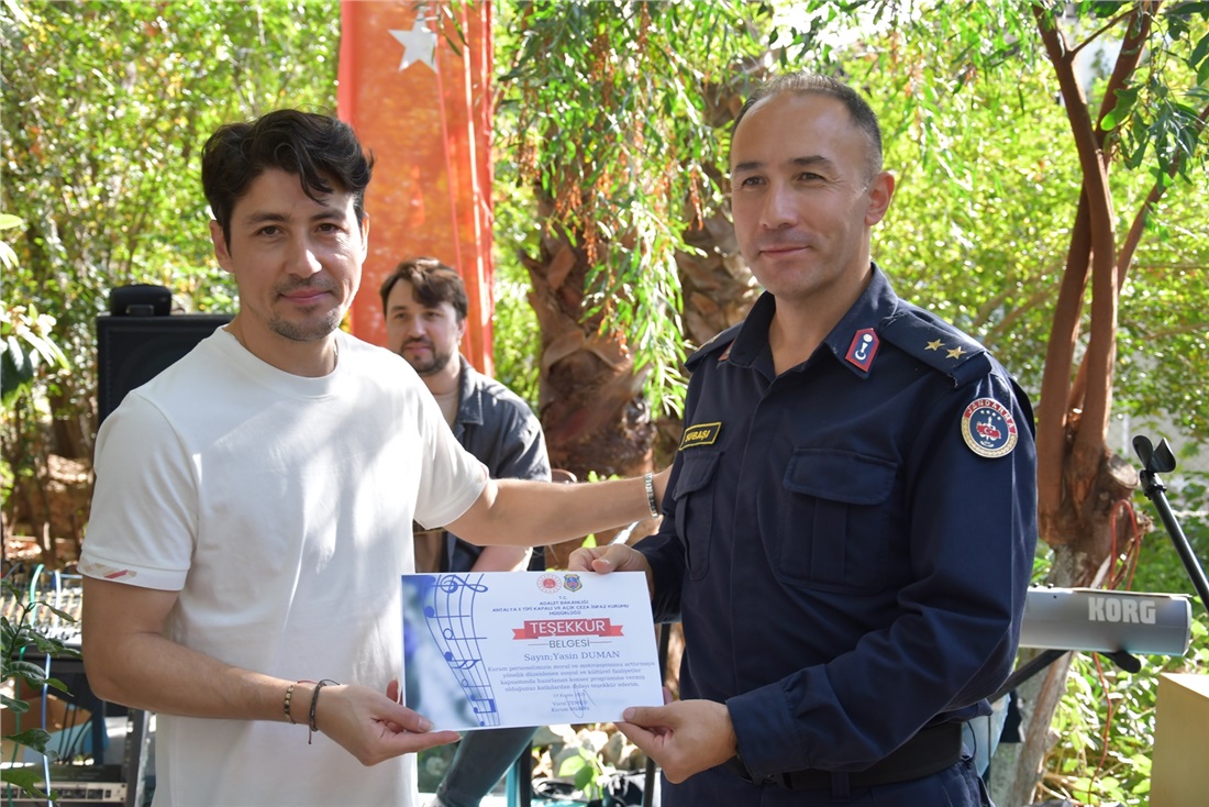Antalya E Tipi Kapalı ve Açık Ceza İnfaz Kurumu bahçesinde bulunan İnfaz ve Koruma Memuru Şahin Bayraktar Personel Sosyal Alanı’nda, kurum personelinin iş stresinden uzaklaşması, moral ve motivasyonunun artırılması ve kurum kültürünün güçlenmesine katkı sağlanması amacıyla bir konser programı düzenlendi. Etkinlik, personelin keyifli vakit geçirmesine imkân tanıyarak kurumsal dayanışmanın gelişmesine önemli katkı sundu.