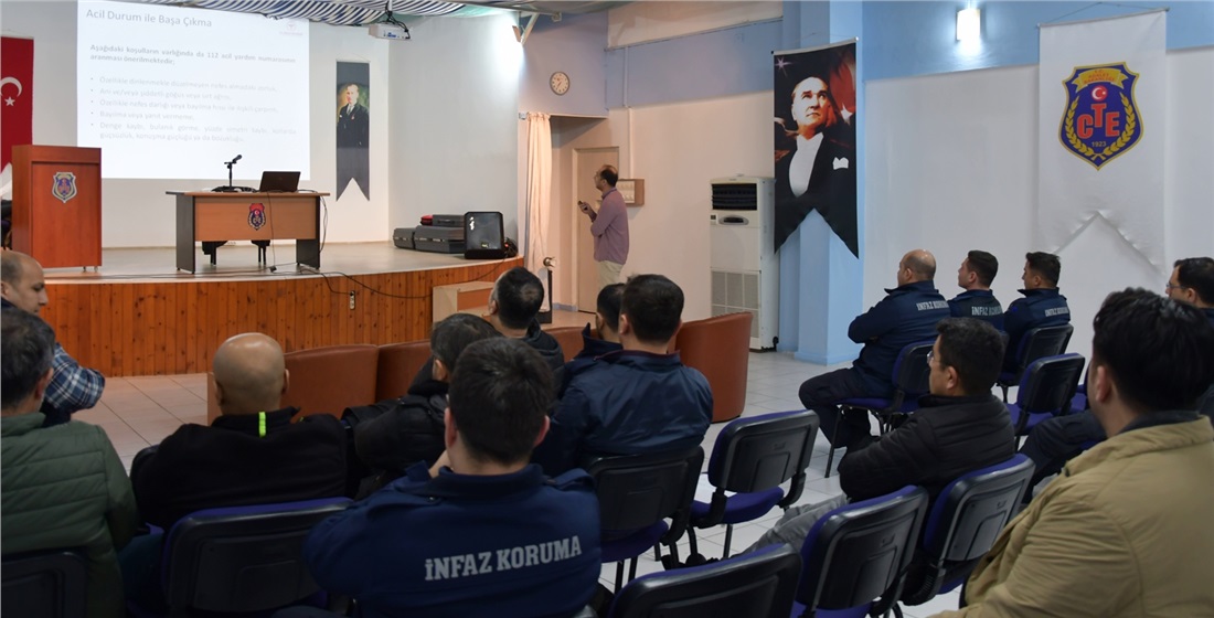 Antalya E Tipi Kapalı ve Açık Ceza İnfaz Kurumu toplantı salonunda kurum personeline yönelik “Sertifikalı İlk Yardım Eğitimi” düzenlendi. Program, personelin olası acil durumlara karşı bilinçli ve doğru müdahalede bulunabilme kapasitesini artırmak amacıyla gerçekleştirildi.