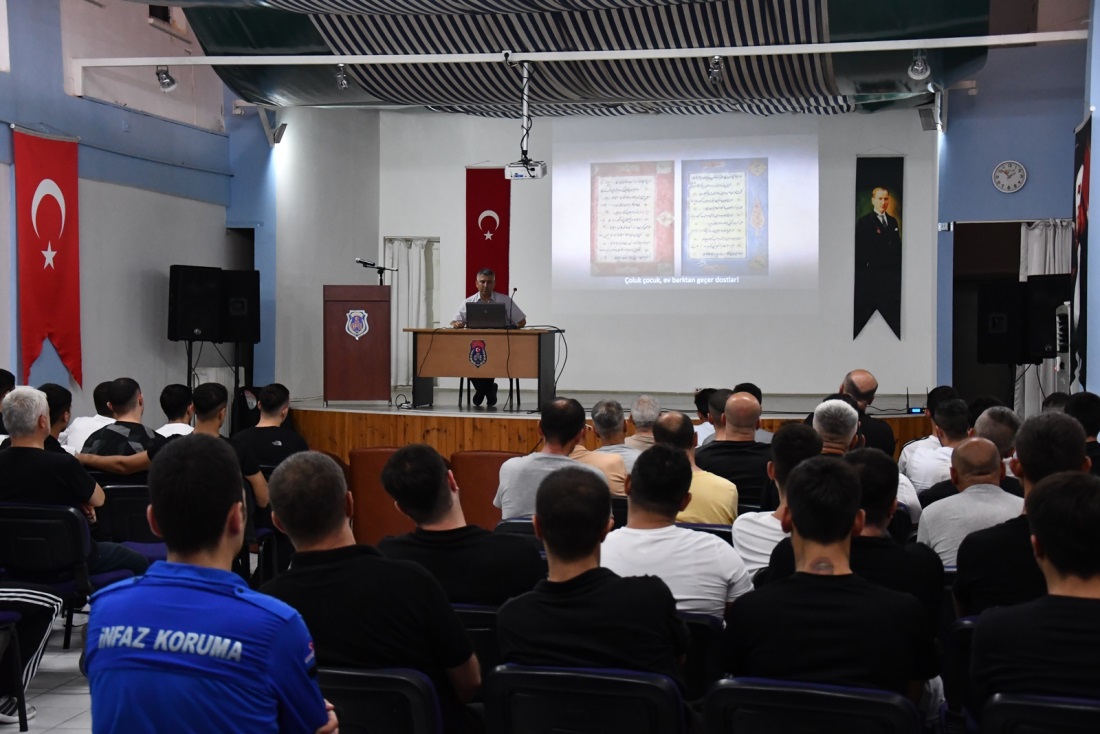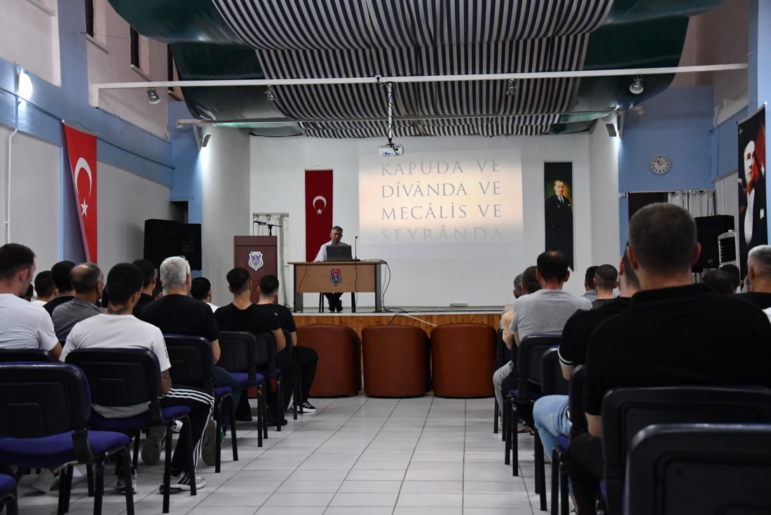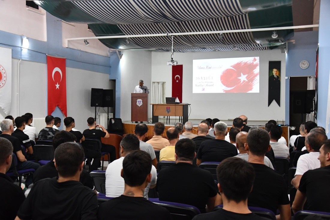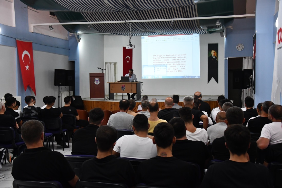 Antalya E Tipi Kapalı ve Açık Ceza İnfaz Kurumunda, Türkçenin Karamanoğlu Mehmet Bey’in 13 Mayıs 1277 tarihli fermanıyla devlet dili ilan edilmesinin 748. yılı ve Gazi Mustafa Kemal Atatürk’ün katılımıyla 1932 yılında gerçekleştirilen I. Türk Dili Kurultayı’nın 93. yıl dönümü vesilesiyle Dil Bayramı kutlama programı düzenlendi. Programda Cumhuriyetimizin kurucusu Gazi Mustafa Kemal Atatürk, Karamanoğlu Mehmet Bey ve Türkçenin gelişmesine katkı sağlayan tüm isimler rahmet ve minnetle anıldı.