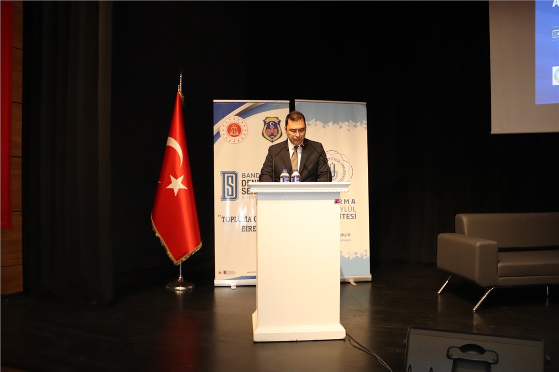 Ardından söz alan Bandırma Cumhuriyet Başsavcımız İsmail Olgun Kurt, denetimli serbestlik sisteminin adli kontrol, eğitim, danışmanlık ve kamu yararına çalışma gibi çok yönlü uygulamaları kapsadığını belirterek, sistemin bugün toplumu merkeze alan çağdaş bir ceza adalet modeli haline geldiğini dile getirdi.