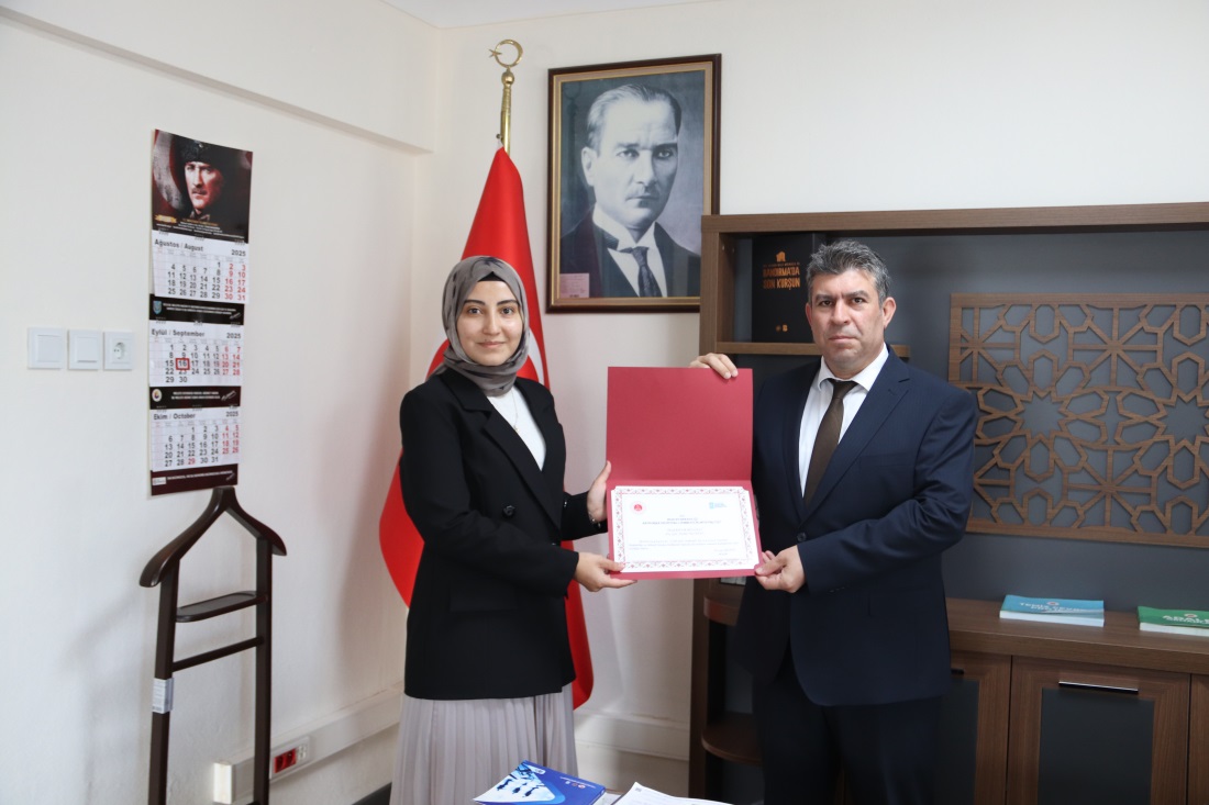Program sonunda Denetimli Serbestlik Müdürü Özcan Deniz, katkılarından dolayı Araştırma Görevlisi Azime Nur Ayaz’a teşekkür belgesi takdim etti.