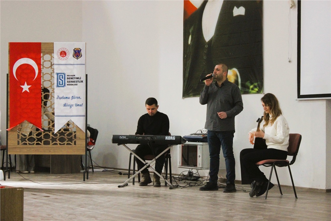 Bolvadin Denetimli Serbestlik Müdürlüğü, Afyonkarahisar Gençlik ve Spor İl Müdürlüğü ve Bolvadin Gençlik Merkezi iş birliğinde denetimli serbestlik yükümlülerine yönelik müzik dinletisi ve halk oyunları gösterisi düzenlendi. Kültürel ve sanatsal faaliyetler kapsamında gerçekleştirilen etkinlikte, yükümlülerin sosyal uyum süreçlerine katkı sağlanması ve toplumsal bağların güçlendirilmesi hedeflendi.