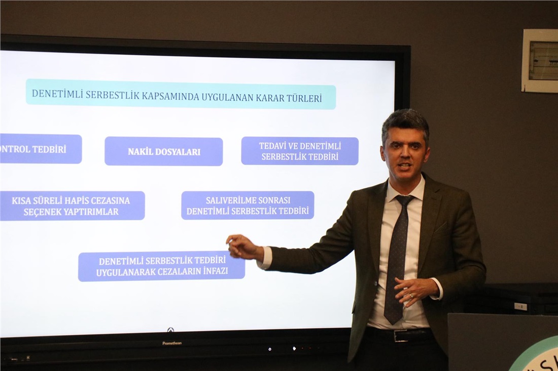 Seminerde konuşmacı olarak İstanbul Anadolu Denetimli Serbestlik Müdürü Seviyya Sancı, Psikolog Özge Sezer ve Kurum Şefi İsmail Yardım yer aldı. Yapılan sunumlarda denetimli serbestliğin yalnızca bir infaz yöntemi olmadığı, bireyin topluma yeniden kazandırılmasını hedefleyen onarıcı ve rehabilite edici bir sistem olduğu vurgulandı. Ayrıca sistemin insan odaklı yaklaşımı ve sosyal iyileşmeye katkıları ele alındı.