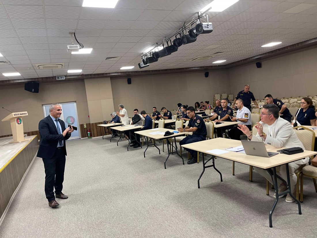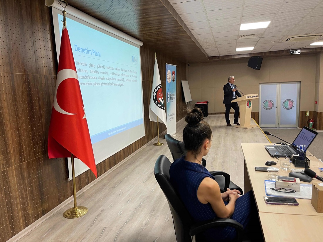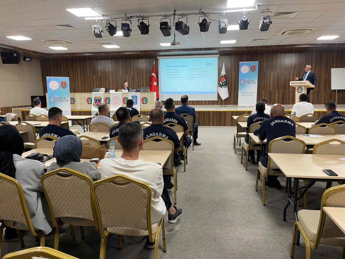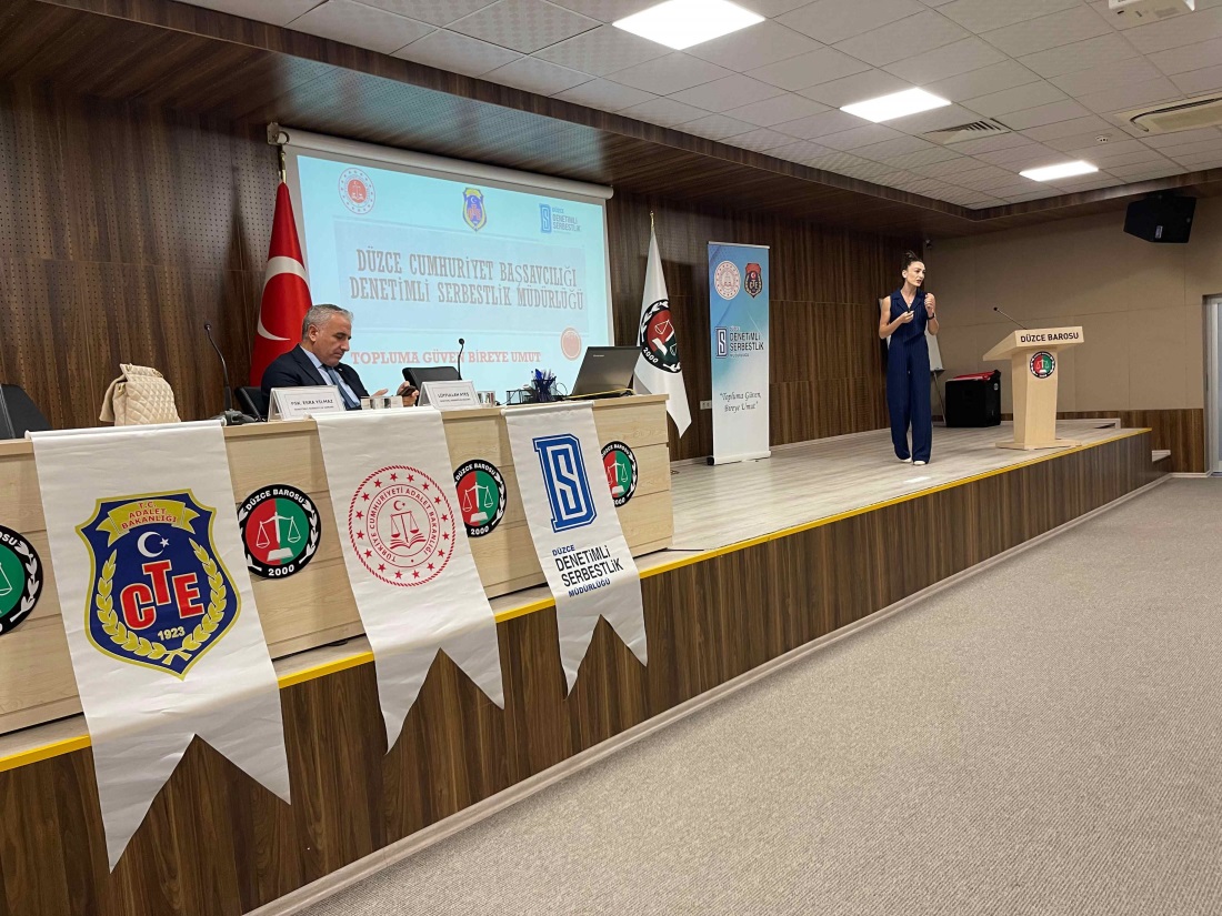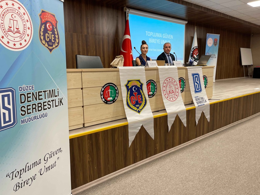 Düzce Barosu Hizmet Binası’nda gerçekleşen programda Kurum Müdürü Lütfullah Ateş ve Kurum Psikoloğu Esra Yılmaz, denetimli serbestlik sisteminin hukuki ve sosyal boyutlarını örneklerle anlattı. Katılımcılara, yükümlülüklerin yerine getirilme süreçleri, eğitim ve iyileştirme faaliyetlerinin çeşitliliği ile toplum yararına gönüllü çalışma imkânları hakkında detaylı bilgi verildi.