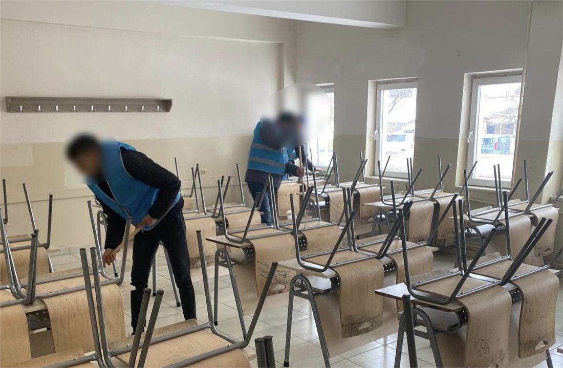 Denetimli serbestlik tedbiri altında bulunan yükümlüler, kamu yararına ücretsiz çalışma yükümlülüğü kapsamında ara tatilde eğitim-öğretime ara verilen okullarda temizlik çalışmaları yaptı. Öğrencilerin tatilde olduğu sürenin verimli şekilde değerlendirilmesi amacıyla yürütülen çalışmalar planlı ve koordineli biçimde tamamlandı.