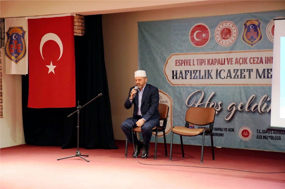 Espiye L Tipi Kapalı Ceza İnfaz Kurumunda hükümlü ve tutukluların manevi gelişimlerine katkı sağlamak amacıyla hafızlık icazet programı düzenlendi.