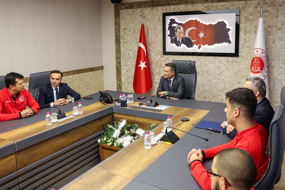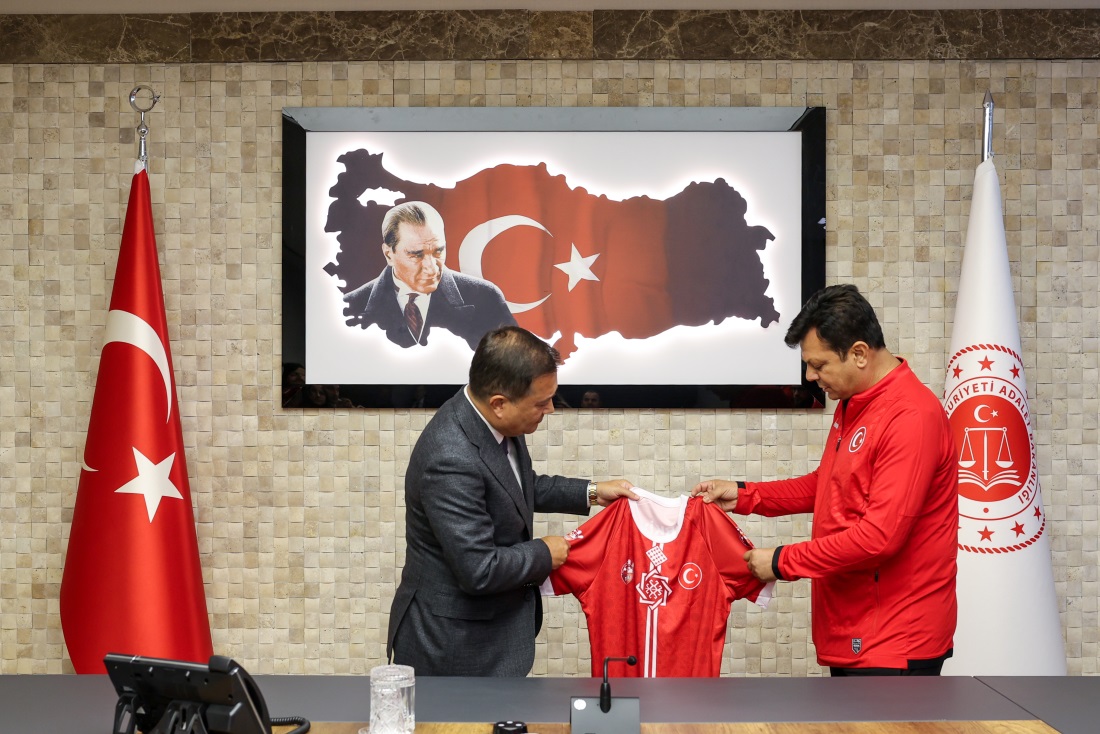 Ceza ve Tevkifevleri Genel Müdürü Enis Yavuz Yıldırım, Antalya Denetimli Serbestlik Müdürlüğünde İnfaz ve Koruma Memuru olarak görev yapan Dart Milli Takım Teknik Direktörü Erdoğan Kaş ile Türkiye Dart Milli Takımını Genel Müdürlükte ağırladı.