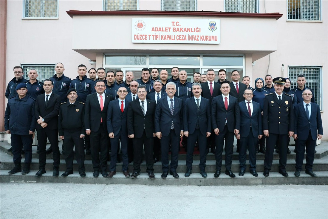 Ceza ve Tevkifevleri Genel Müdürü Çelebi Yılmaz ve beraberindeki heyet, Düzce T Tipi Kapalı ve Açık Ceza İnfaz Kurumu’nu ziyaret ederek hükümlülerin gelişimine yönelik yürütülen eğitim, iyileştirme ve üretim faaliyetlerini yerinde inceledi.