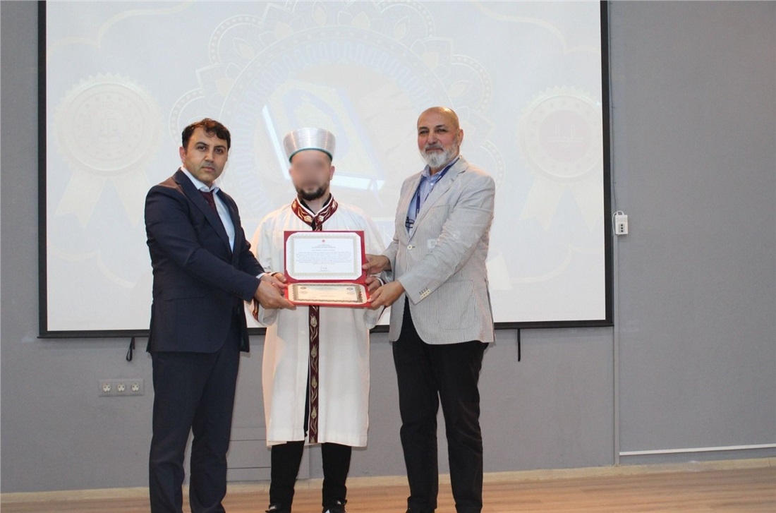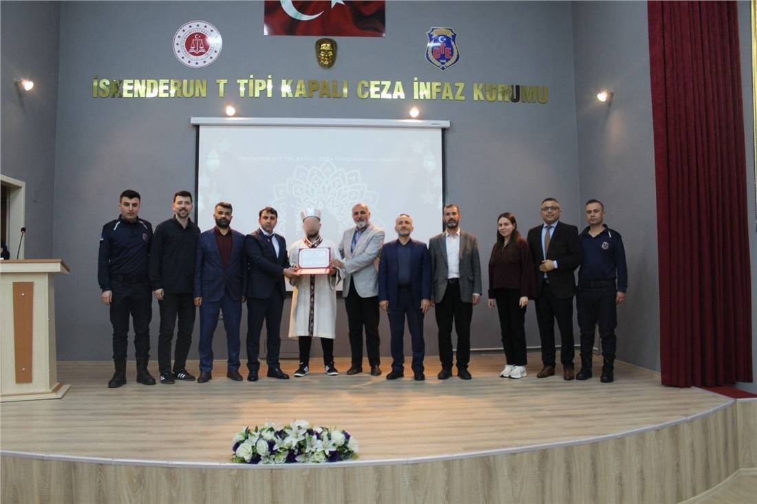 İskenderun T Tipi Kapalı Ceza İnfaz Kurumunda hafızlık eğitimini tamamlayan hükümlü için icazet ve belge takdim töreni düzenlendi.