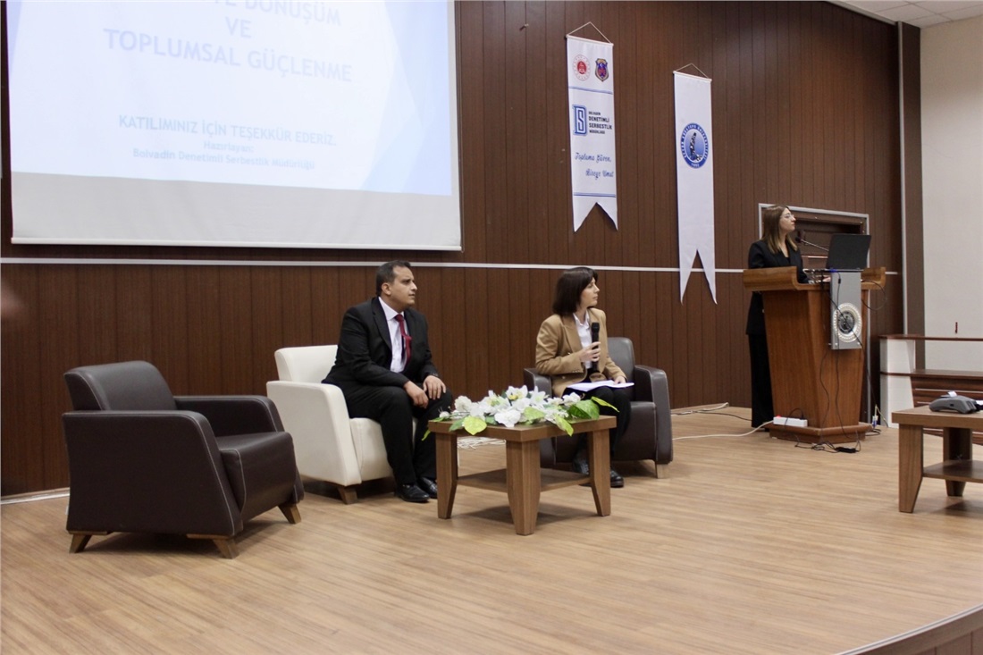 Bolvadin Denetimli Serbestlik Müdürlüğü tarafından, denetimli serbestlik uygulamalarının tanıtılması ve kamuoyundaki bilinirliğinin artırılması amacıyla Bolvadin Uygulamalı Bilimler Fakültesi ile Bolvadin Meslek Yüksekokulu öğrencilerine yönelik “Denetimli Serbestlik Tanıtım Konferansı” düzenlendi. Programa Bolvadin Cumhuriyet Başsavcısı Ümit Güntürk, Adalet Komisyonu Başkanı Semih Uygur, Fakülte Dekanı Prof. Dr. Mustafa Fişne, Meslek Yüksekokulu Müdürü Prof. Dr. Hüseyin Bayrakçeken ile akademik personel ve öğrenciler katılım sağladı.