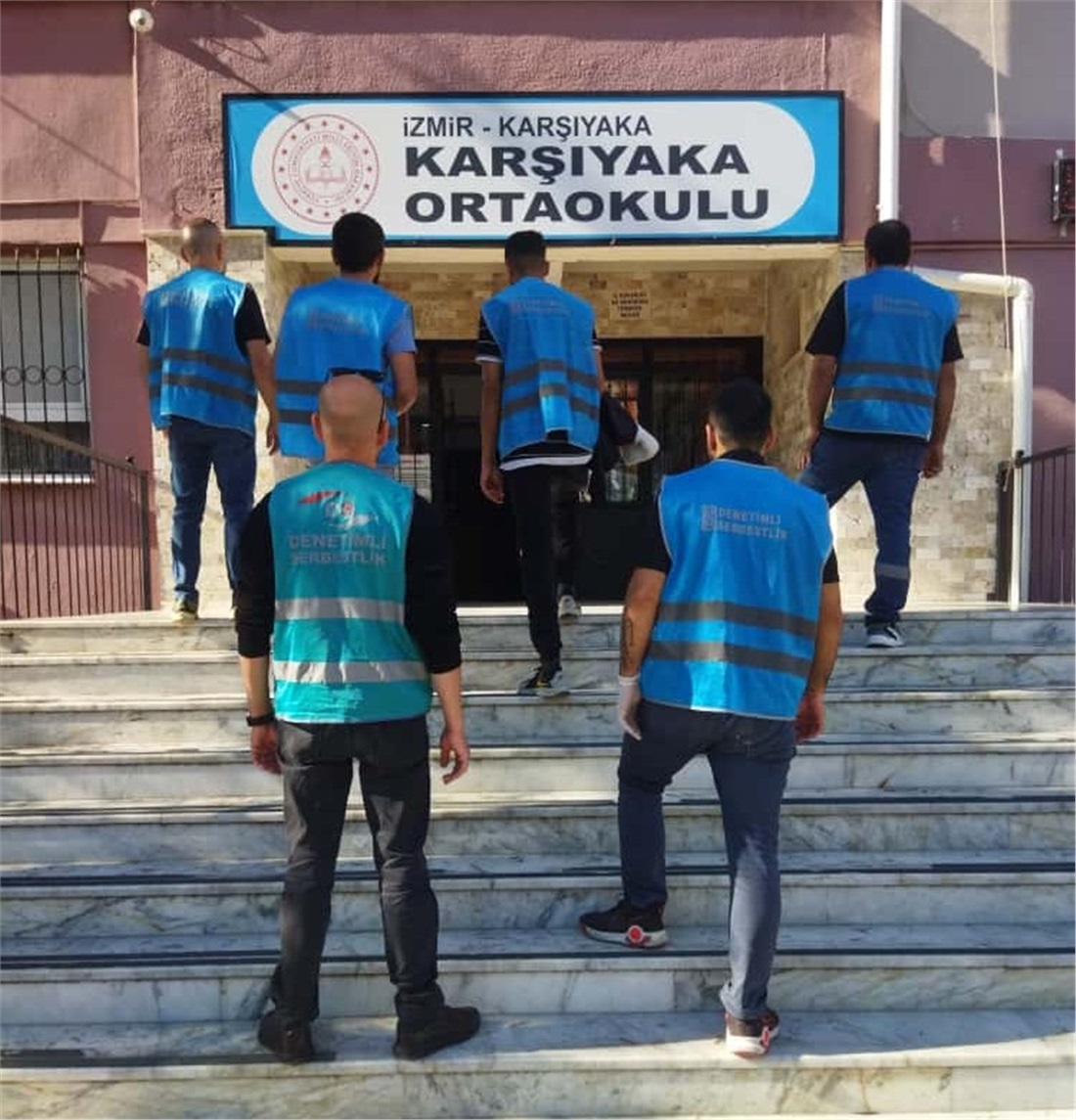 Karşıyaka Denetimli Serbestlik Müdürlüğü tarafından yürütülen kamu hizmeti çalışmaları ara tatil döneminde de hız kesmeden devam etti. Kamu yararına çalışma yükümlülüğü bulunan yükümlüler, ara tatil süresince Karşıyaka’da Cemil Akyüz Ortaokulu ve Karşıyaka Ortaokulu’nda, ayrıca Yeni Foça’da Reha Midilli İlkokulu, Reha Midilli Ortaokulu ve Yeni Foça Anaokulu’nda görev aldı.