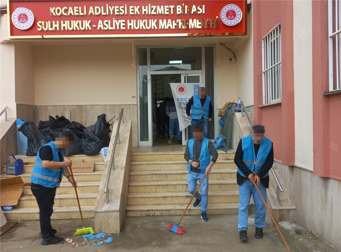 Toplam 46 yükümlü tarafından Kocaeli Adliyesi Yeni Ek Hizmet Binasında eşya taşıma, bina içi düzenleme ile bina ve çevre temizlik işleri titizlikle yerine getirildi. Çalışmalar, ilgili birimlerin koordinasyonunda planlı ve güvenli şekilde tamamlandı.