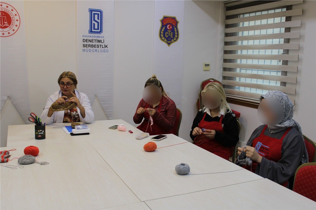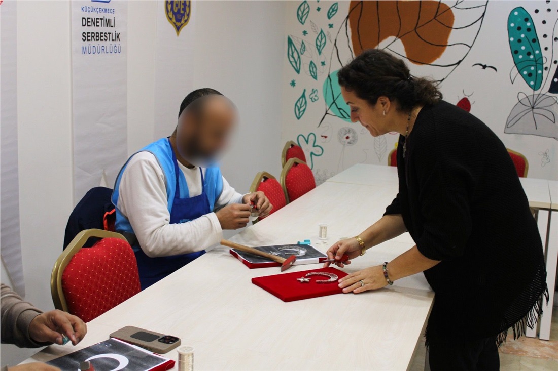 Küçükçekmece Denetimli Serbestlik Müdürlüğü tarafından yürütülen “Sanatla Terapi Projesi” çerçevesinde, yükümlülere yönelik Tığ Örücülüğü ve Filografi kursları açıldı. Proje, yükümlülerin el becerilerini geliştirerek üretkenliklerini artırmayı ve sanatsal faaliyetler aracılığıyla rehabilitasyon süreçlerine katkı sağlamayı amaçlıyor.