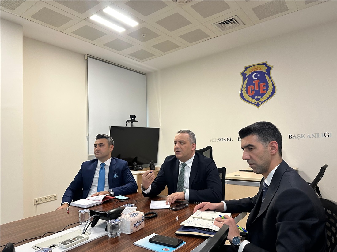Personel Eğitim Daire Başkanı Gökhan Köseoğlu başkanlığında gerçekleşen toplantıya; Tetkik Hâkimi Muammer Bircan, Tetkik Hâkimi Remzi Çermik, Ankara Personel Eğitim Merkezi Başkanı Harun Ceyhan, Kahramanmaraş Personel Eğitim Merkezi Başkanı İlknur Görgel, Denizli Hasan Erbil Personel Eğitim Merkezi Başkanı Erhan Kilik, İstanbul Ord. Prof. Dr. Sulhi Dönmezer Eğitim Merkezi Başkan Yardımcısı Nuran Köylü ve Erzurum Hüseyin Turgut Eğitim Merkezi Başkan Yardımcısı İrfan Alper katıldı.