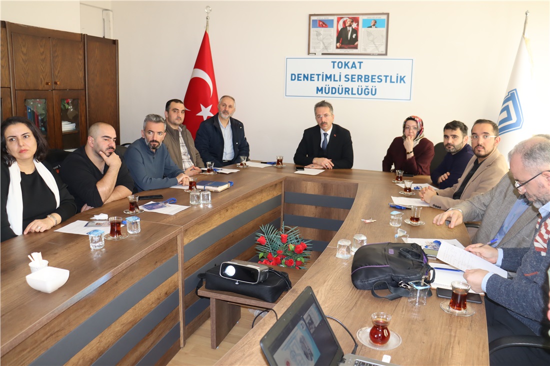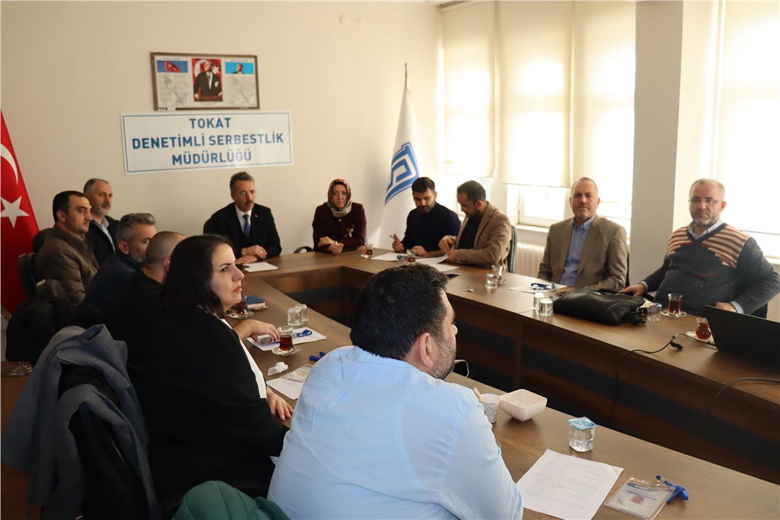 Tokat Denetimli Serbestlik Müdürlüğü toplantı salonunda, denetimli serbestlik yükümlülerinin topluma kazandırılması sürecinde gönüllü olarak görev yapan farklı meslek gruplarından uzmanlarla önemli bir toplantı gerçekleştirildi. Toplantıda, gönüllülerin adalet sistemi içerisindeki rolü, denetimli serbestlik yükümlülerine yönelik eğitim, rehabilitasyon ve toplumsal uyum faaliyetlerine katkıları ele alındı. Gönüllülük ruhunun önemi vurgulanarak, faaliyetlerin etkin şekilde yürütülmesi için öneriler paylaşıldı.