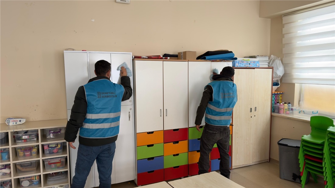 Yarıyıl tatili süresince Karşıyaka Denetimli Serbestlik Müdürlüğü, Adana Denetimli Serbestlik Müdürlüğü, Konya Denetimli Serbestlik Müdürlüğü ve Elazığ Denetimli Serbestlik Müdürlüğü koordinasyonunda, kamu yararına ücretsiz çalışma yükümlülüğü kapsamında eğitim kurumlarında bakım, onarım, temizlik ve çevre düzenleme çalışmaları gerçekleştirildi. Çalışmalarla okulların fiziki koşulları iyileştirilerek öğrenciler için daha temiz, güvenli ve nitelikli eğitim ortamları oluşturuldu.