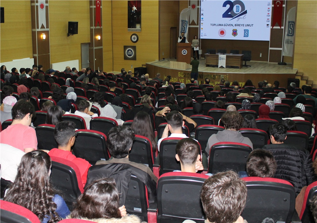 Yozgat Cumhuriyet Başsavcılığı, Bozok Üniversitesi ve Yozgat Denetimli Serbestlik Müdürlüğü iş birliğinde, denetimli serbestlik uygulamasının hukuki, sosyal ve toplumsal boyutlarının ele alındığı “20. Yılında Denetimli Serbestlik” konulu konferans Bozok Üniversitesi İktisadi ve İdari Bilimler Fakültesi Konferans Salonunda gerçekleştirildi. Seminere Bozok Üniversitesi Rektör Yardımcısı Prof. Dr. Tansel Hacıhasanoğlu, Üniversite Genel Sekreteri Doç. Dr. Mustafa Kocakaya, Yozgat Cumhuriyet Başsavcısı Enes Serdar Aydoğan, Cumhuriyet Savcısı Serdar Yılmaz, akademisyenler ile Hukuk, Eğitim ve Tıp Fakültesi öğrencileri katıldı.